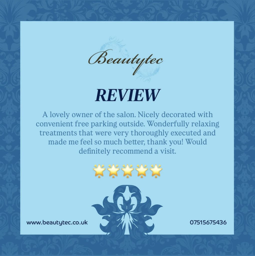 We pride ourselves on offering you high quality treatments and services tailored to your specific skincare and beauty needs. Take a look at what our customers think of their visit to Beautytec.
